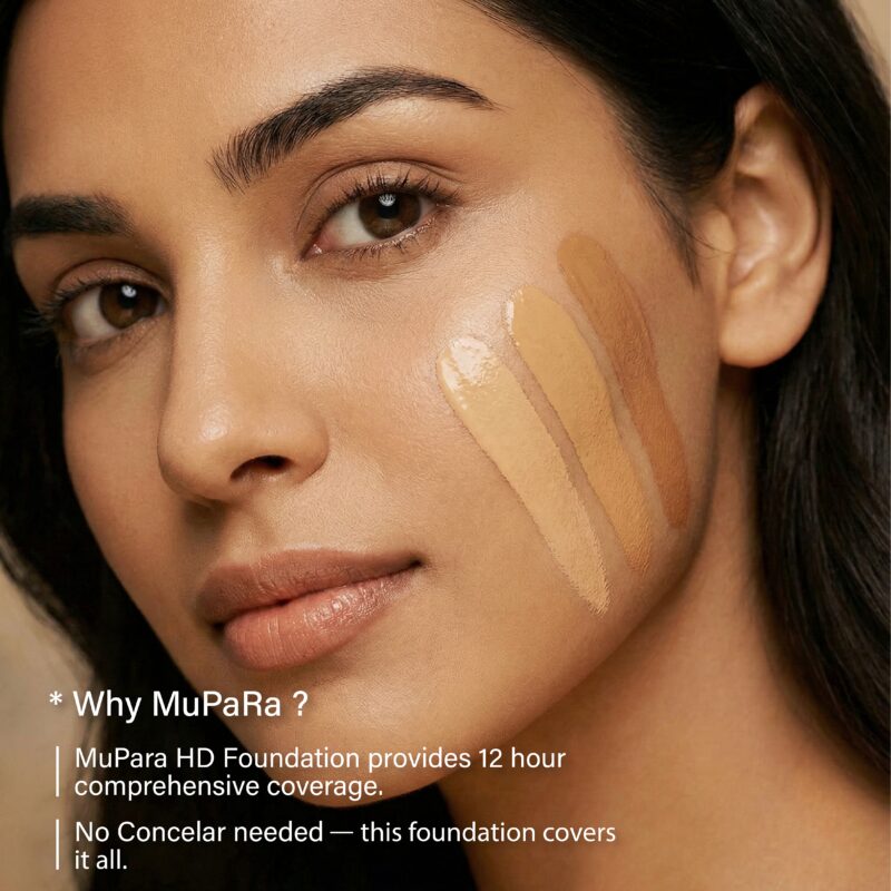 This before-and-after comparison shows exactly what Mupara HD Foundation is made for: smoothing uneven texture, covering blemishes, and delivering a flawless soft-focus finish. Designed for all skin types, this high-definition formula evens out your complexion while still looking natural, breathable, and camera-ready.