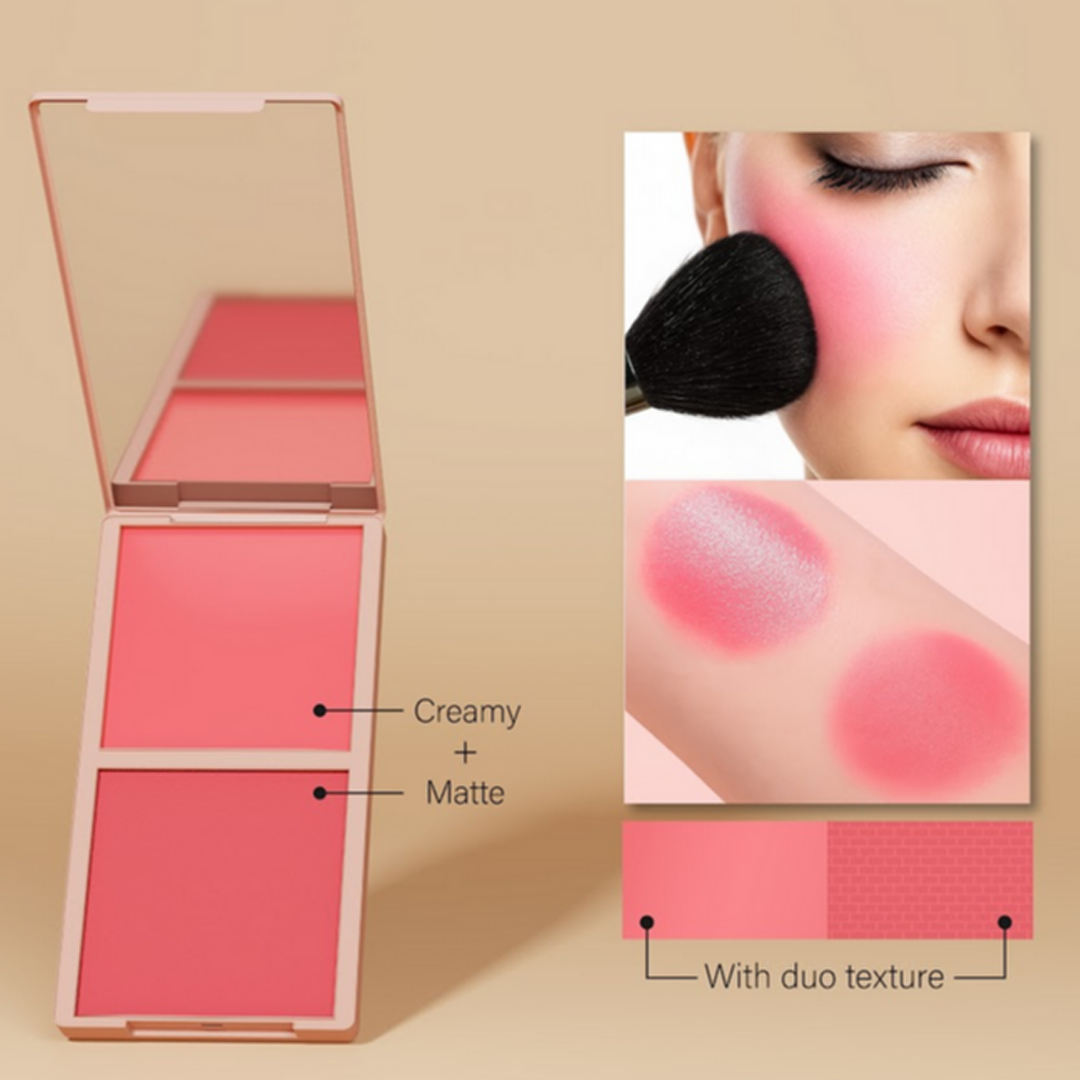 Apply your Mupara Barbie Color Palette using a soft brush. Sweep the lighter shade onto the high points of your cheeks, then blend the deeper shade onto the apples for a lifted, radiant finish.